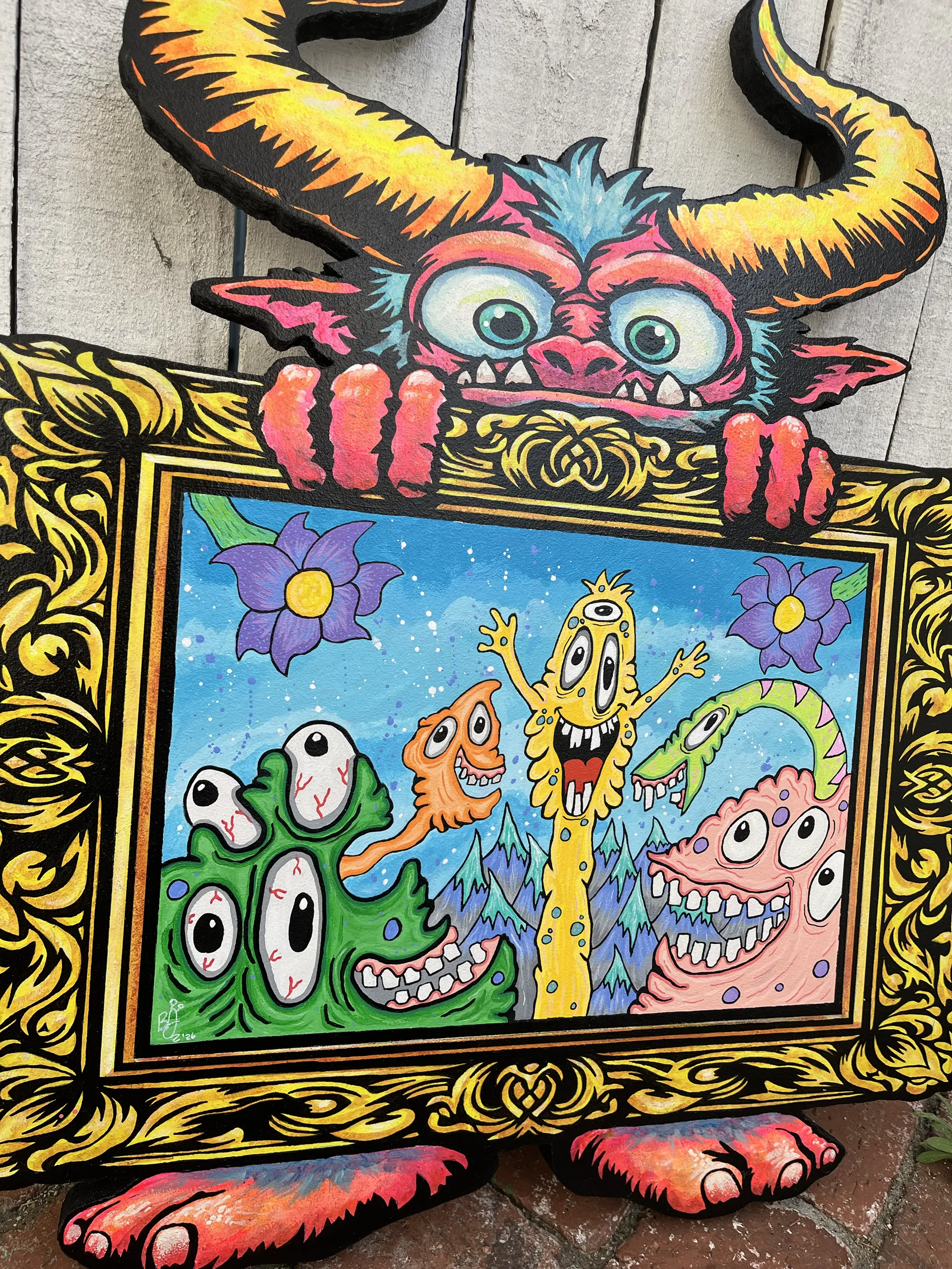 Original hand painted skateboard made by ME! Spray painted background with acrylic paint art on top. One of a kind! The dimensions for these pieces are 7.75 X 31.5. Hope to see it hanging on a wall as an art piece or skateboarding around the town! 👽