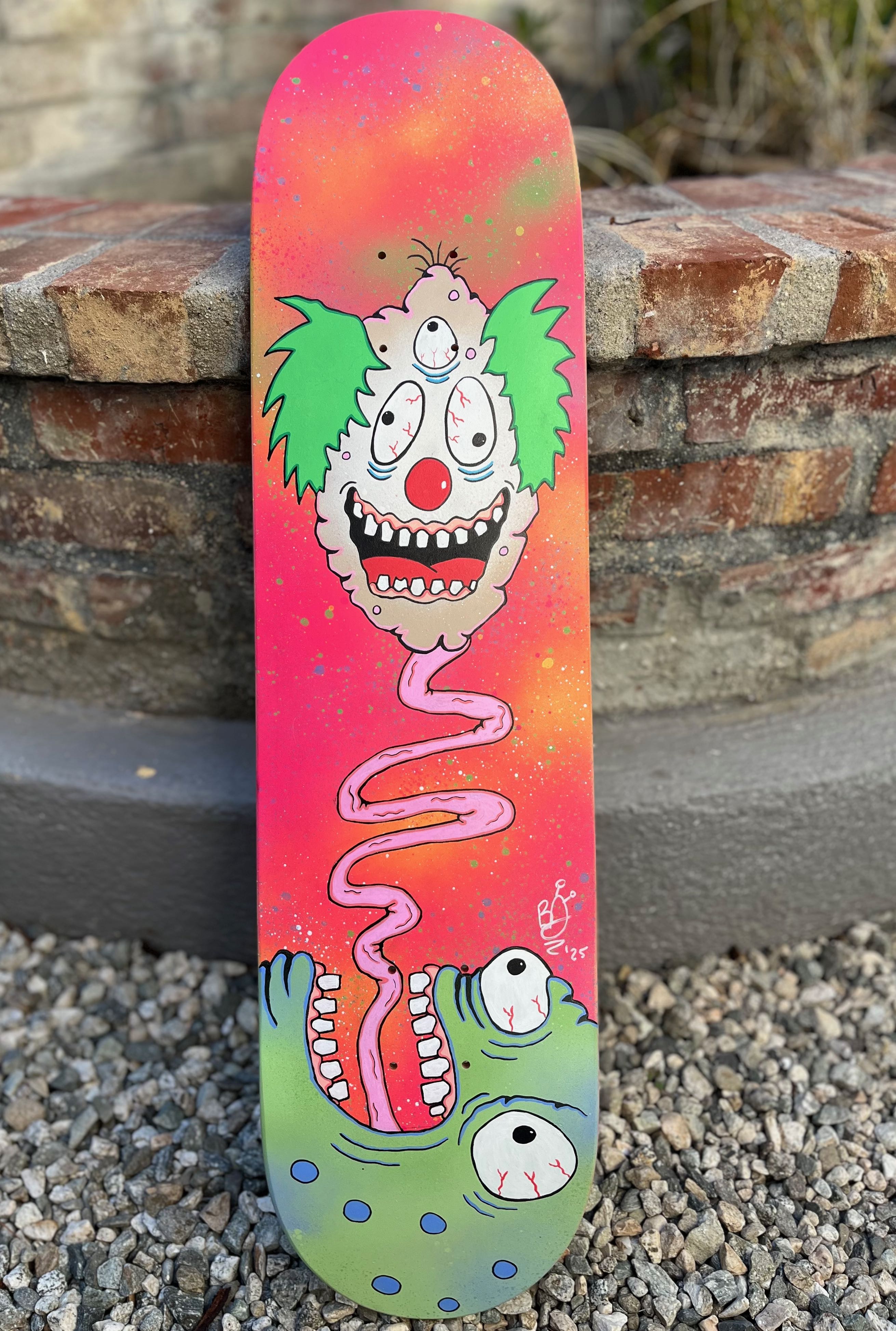 Original hand painted skateboard made by ME! Spray painted background with acrylic paint art on top. One of a kind! The dimensions for these pieces are 7.75 X 31.5. Hope to see it hanging on a wall as an art piece or skateboarding around the town! 👽